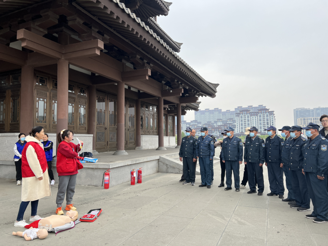 為保障齊盛湖公園五一節(jié)假日安全,提升安保隊(duì)員應(yīng)急處突能力,保障游客生命財(cái)產(chǎn)安全,4月25日,市保安公司在齊盛湖公園海岱樓廣場(chǎng)開展消防、應(yīng)急救援心肺復(fù)蘇等培訓(xùn)演練活動(dòng)。