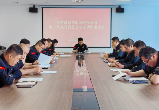 為全面摸清黨員群眾思想狀況,把準職工隊伍思想脈搏,進一步抓好思想政治工作,有效凝聚起推進國企深化改革強大合力。4月24日,市保安公司黨建辦組織召開第一季度黨員思想動態(tài)調研座談會,會議由黨委副書記王成同志主持,各黨支部書記及黨建辦工作人員參會。