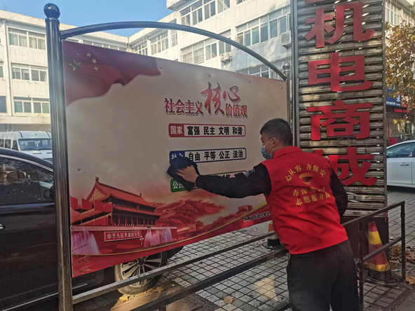 隨后,志愿者們又來到駐地附近的公共道路開展公交站牌和公益廣告牌衛(wèi)生清理工作,通過開展系列志愿服務(wù)活動,改善城市環(huán)境的同時,引導(dǎo)廣大市民提高環(huán)衛(wèi)意識,為營造整潔有序、環(huán)境優(yōu)美的城市環(huán)境貢獻(xiàn)了淄保力量。