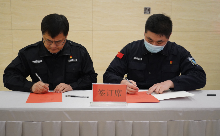 黨委書記、董事長付志欣同志與中層代表簽訂2023年度黨風(fēng)廉政建設(shè)目標(biāo)責(zé)任書、2023年度安全生產(chǎn)目標(biāo)責(zé)任書,與押運(yùn)隊員代表簽訂持槍人員規(guī)范用槍承諾書。